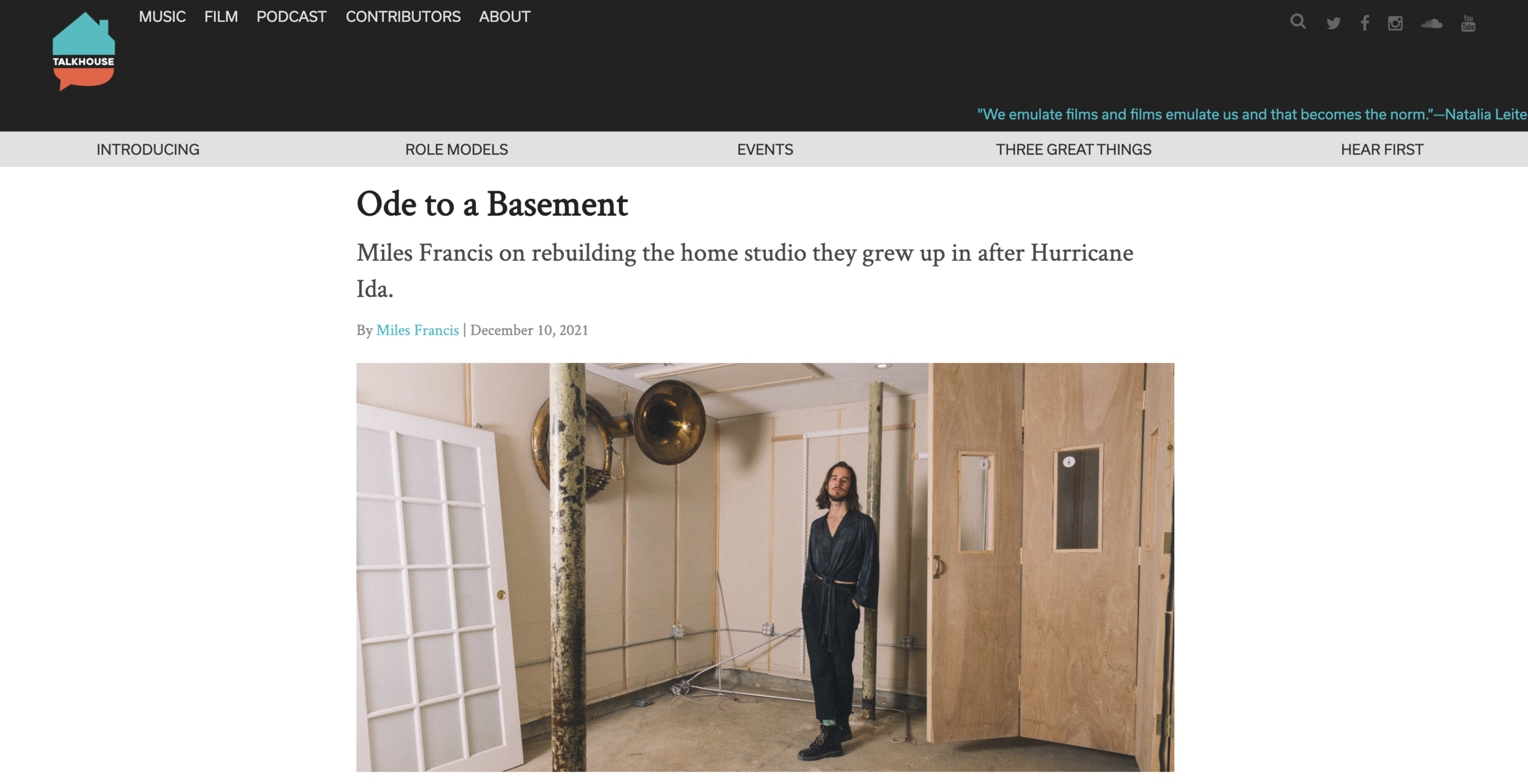 WRITING “A Conversation With My Father About Manhood” for For The Record - READ “What I Learned From Tony Allen” for Talkhouse - READ “Ode to a Basement” for Talkhouse - READ